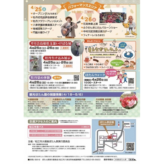 | お問合せ先 | 松江市大根島ぼたん祭実行委員会 0852-55-5820 |