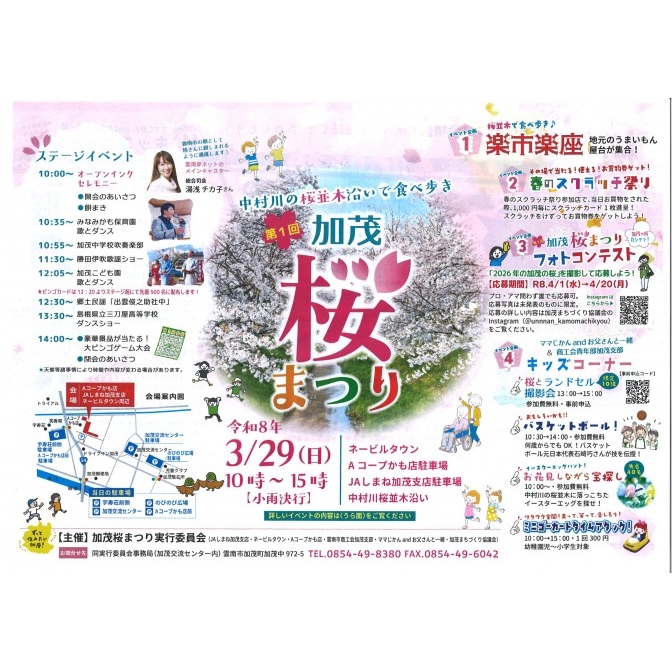 | お問合せ先 | 加茂桜まつり実行委員会(加茂交流センター内) 0854-49-8380 |